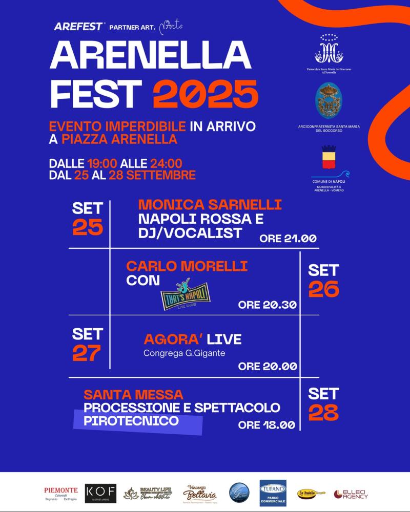 La rassegna, promossa dalla Parrocchia e Arciconfraternita di Santa Maria del Soccorso con il sostegno dei commercianti locali, vuole essere un momento di condivisione per residenti e visitatori, offrendo serate di intrattenimento e spiritualità. L’appuntamento si svolge in Piazza Arenella dalle 19:00 fino a mezzanotte, con un calendario che culmina nella solenne processione e nel gran finale pirotecnico.