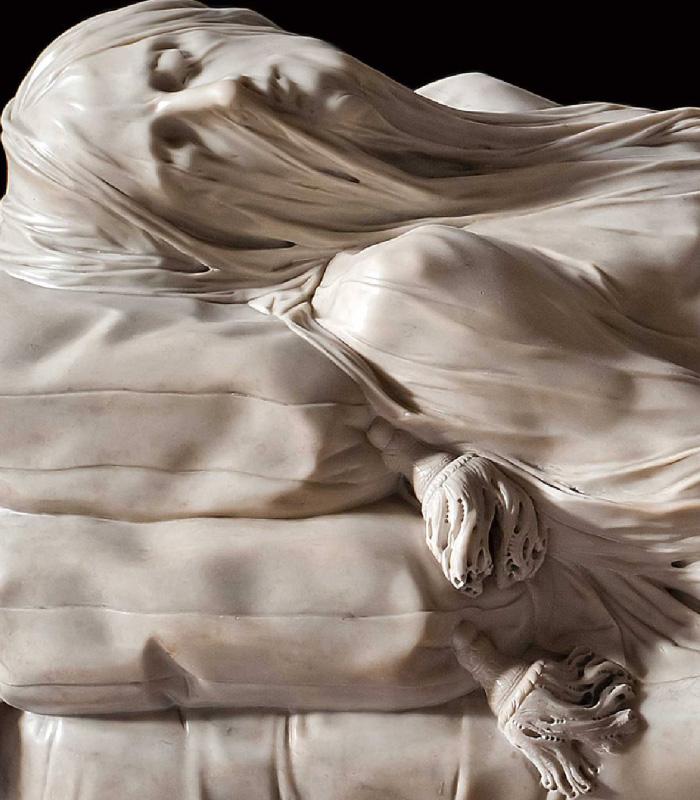 Il velo appare morbido, in realtà, grazie alla capacità dello scultore Giuseppe Sanmartino mentre la leggenda racconta di poteri esoterici del principe Raimondo di Sangro.