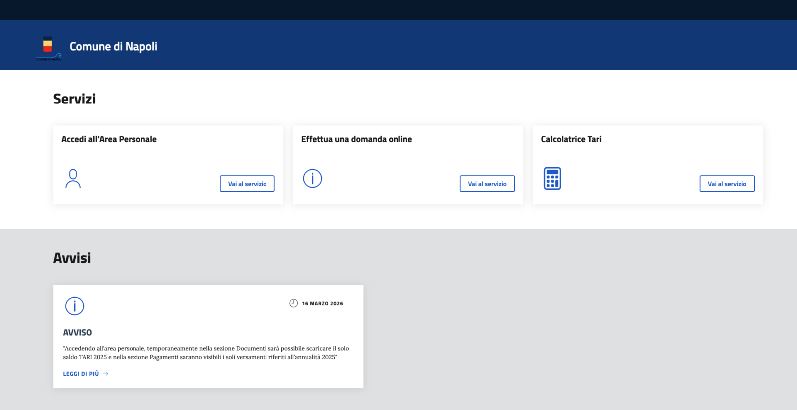 Per il calcolo della TARI 2026 bisogna appoggiarsi al portale tributi che potete trovare a questo indirizzo: https://portaletributi.comune.napoli.it/?ente=NAPO