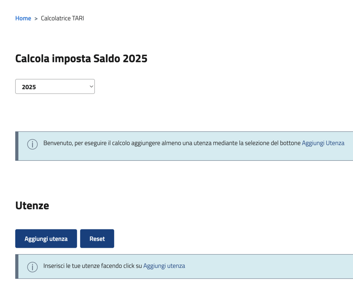 Il comune dal 2026 ha deciso di appoggiarsi ad un’altra piattaforma, ovvero il PORTALE TRIBUTI a differenza degli anni scorsi. Pertanto, se dovete calcolare l’ammontare delle TARI precedenti al 2026, dovete appoggiarvi al servizio RISCOTEL, se invece volete calcolare quella del 2026 dovete usare il portale tributi.